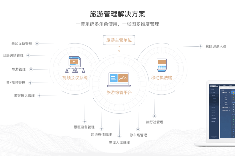 路通物聯是路通視信旗下專注智慧全域旅游領域的技術研發和落地運營公司。是擁有核心技術和自主知識產權并全面落地實施的 智慧全域旅游綜合解決方案供應商。多年來,公司立足市場和國策,依托互聯網、物聯網、大數據、云計算等新興技術,秉承“自 主研發、落地至上”的開發理念完成了“1+3+N”的產品構架,并長期為各省、市、區縣旅游局,旅發委、運營商、集成商提供優質服務。